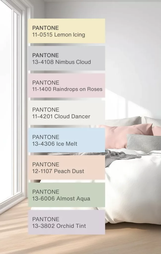 Le Support du Pastel : Cloud Dancer sert de fondation équilibrée pour l’incorporation de touches pastel ou de couleurs discrètes. Il peut magnifier un rose quartz délicat, un vert tilleul organique ou un bleu brume serein, créant des palettes d’une douceur nuancée qui captent l’œil sans l’agresser.