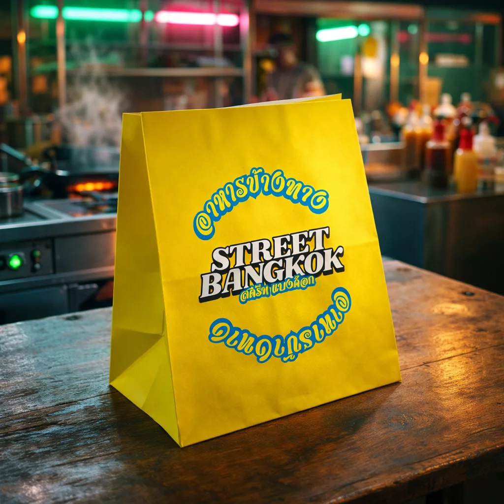 Take away, SOS… ce sac produit en série sur machine porte différents noms. Avec ou sans poignées torsadées ou plates, en kraft blanc ou brun, avec ou sans retour, découpe dentelée ou droite…
